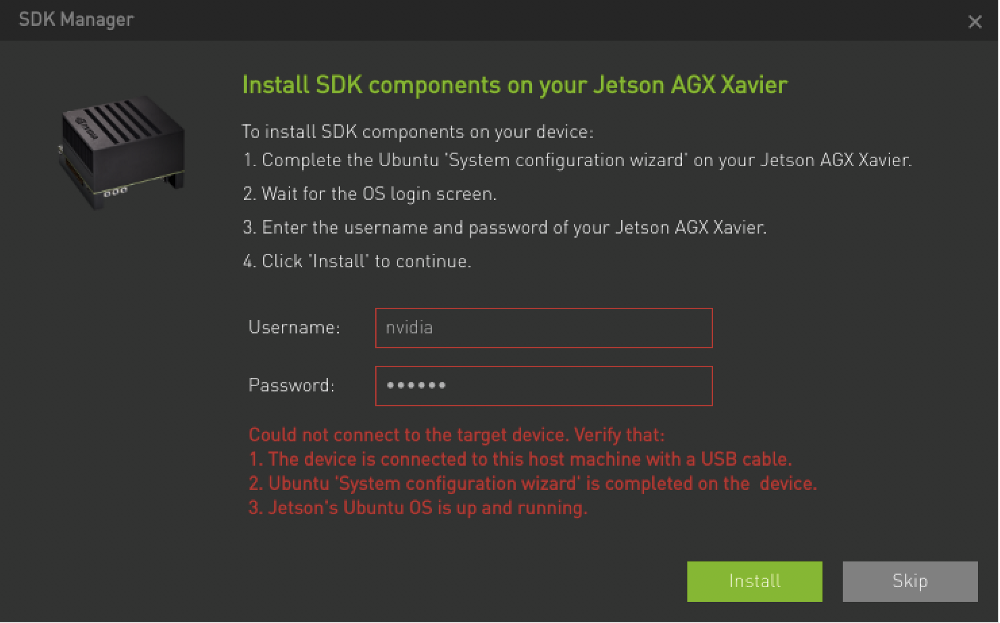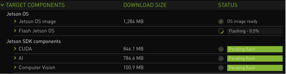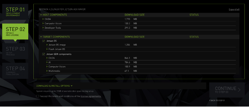 – Flash Jetson AGX Xavier -> Install Size 30,056MB - Jetson SDK components