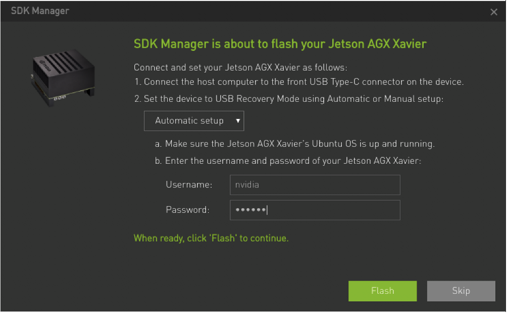 Flash버튼을 눌러 Jetson OS를 설치 또는 Skip하기