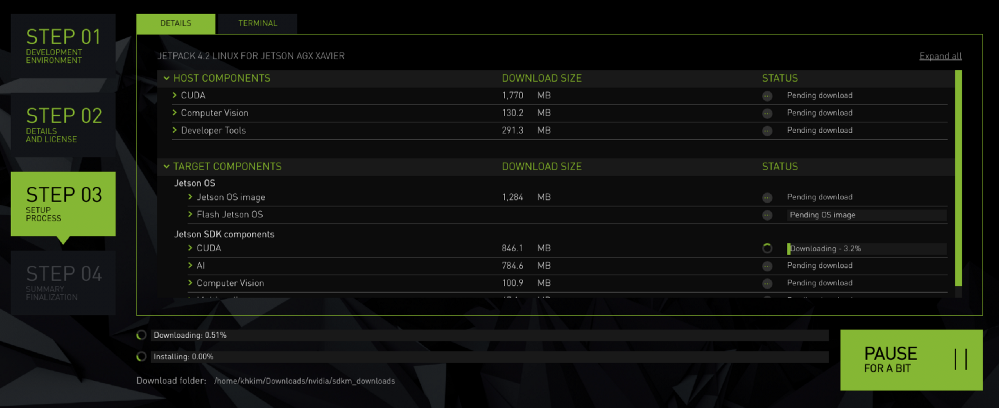 다운로드가 완료되고 다음과 같은 화면이 나오면 Xavier에 설치할 준비가 완료된 것 입니다.
