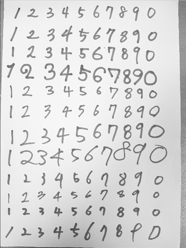 머신러닝을 통해 손글씨를 인식하기 위해 Opencv의 함수들과 scikit-learn의 ML기법들을 이용해서 전처리 부터 손글씨 인식 단계까지 진행해보고자 한다. 아래와 같이 직접 적은 글씨를 MNIST데이터를 통해 훈련시킨뒤에 이미지를 전처리해서 TEST하여 정확도를 확인하는 단계까지 진행하였다.