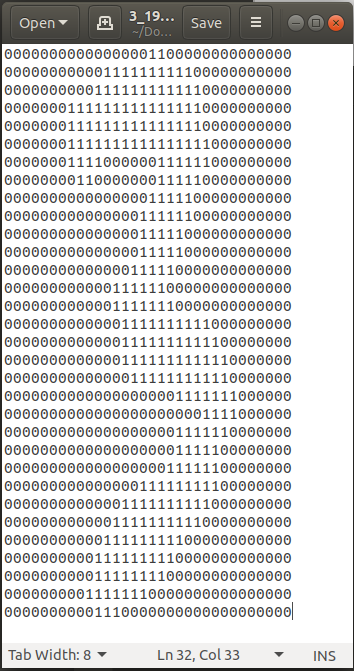 이런식으로 0과 1로 이루어져 있는 txt파일이 존재한다. 우리가 이 훈련 데이터를 훈련시키기 위해서는 이걸 그대로 배열 형태로 변환해서 사용해도 되지만 실제 데이터로 test를 할 예정 이기도 하고, 이미지로 변환시켜주는 전처리를 연습도 할겸, 이미지로 먼저 변환을 해주었다.