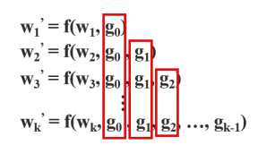 (여기서 f는 가중치를 업데이트하는 함수, w는 forward pass의 가중치. g는 미분을 통해 얻어지는 기울기를 뜻한다.)