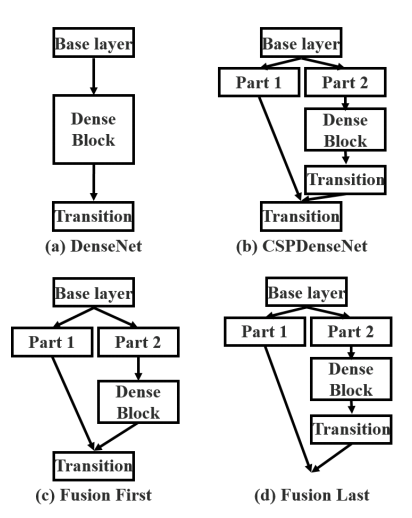 이러한 구조는 DenseNet의 출력값 연결을 통한 재사용을 유지하면서도, gradient information이 많아지는 것을 방지해준다. 이 것은 계층의 feature fusion으로 인해 이루어질 수 있으며, trasition layer가 그 역할을 한다고 한다.