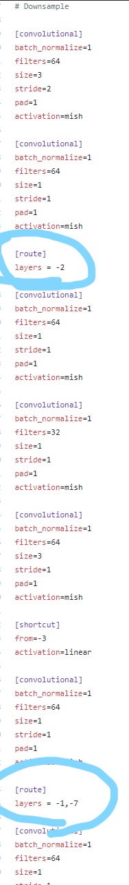 가장 쉽게 확인할 수 있는 부분은 CSPDarkNet이 적용된 YOLO v4를 확인해보면, route라는 block을 통해 CSPNet의 특성인 앞단에서 part를 나눈 다음 끝단에서 다시 합치는 것을 확인할 수 있다.