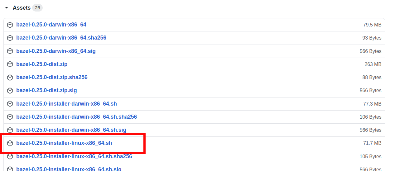 bazel-0.25.0-installer-linux-x86_64.sh 다운로드
