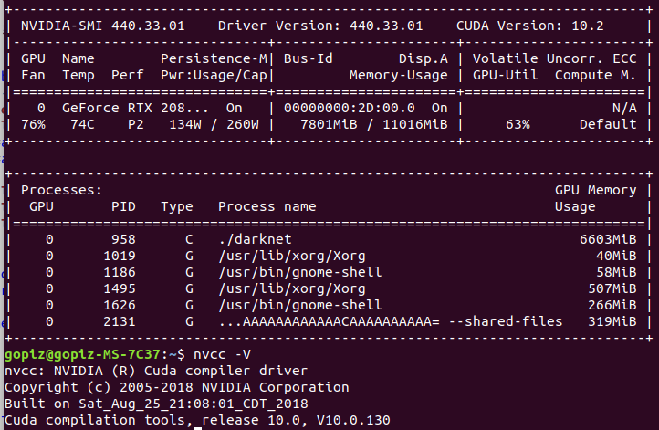 2020/04/17 - [잡다한 것] - Ubuntu 18.04 그래픽 드라이버, Cuda 10.0 설치