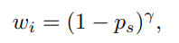 Focal Loss 는 hard example에 가중치를 동적으로 할당하는 함수 중 선구적인 예이다. γ = 0이면 일반 cross entropy 로 동작하지만, γ = 2이면 hard와 easy사이 trade-off가 된다.