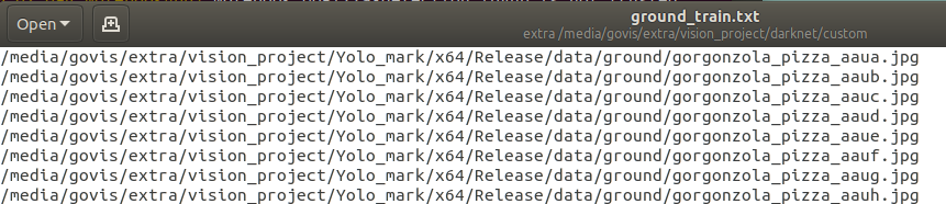 YOLO mark에서 추출되는 절대경로로된 labeling image list 텍스트파일 준비