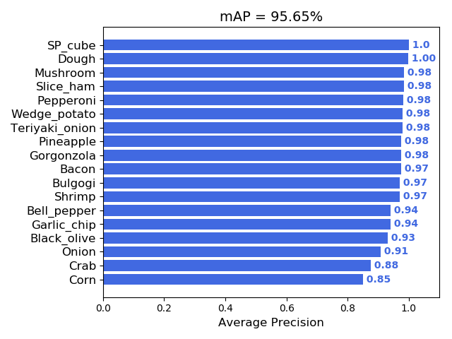 토핑별 AP 및 전체 mAP