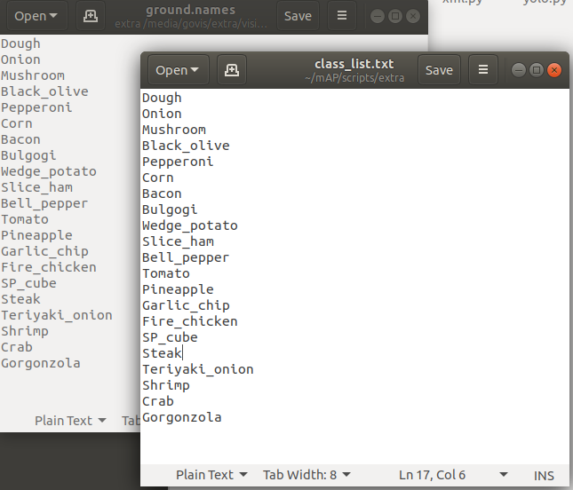 사용하는 darknet폴더의 names파일 내용을 복사해서 붙여넣기 해주면 된다.